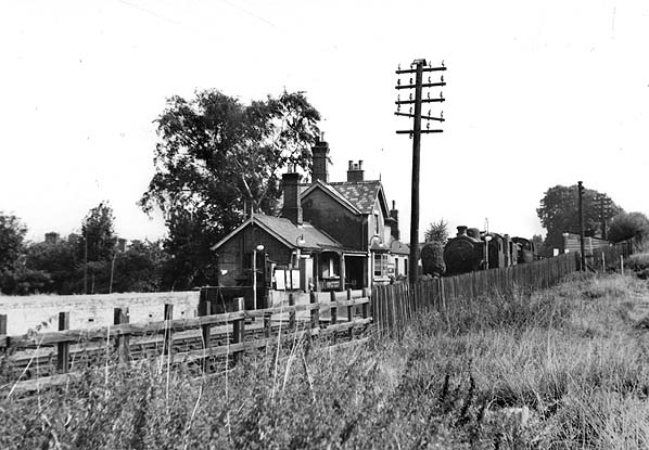 Harpenden East station looking south in September 1959, the cattle dock is seen on the left.