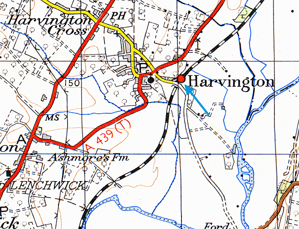 Junction Railway), Salford Priors, and Harvington. Between Evesham