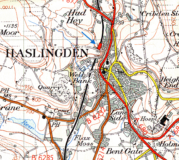 Ordnance Survey One-inch map represented Haslingden as a principal station (although the criteria for identifying such stations were - and still are – arbitrary!) and it served a town of over 14,000 inhabitants, yet it closed to passengers on 7th November 1960, six years before the line itself. This apparently curious decision reflected the local geography. The station was on the very edge of the town, at the foot of a steep hill whilst frequent bus services ran through the town centre towards Accrington, Bury and Rossendale.