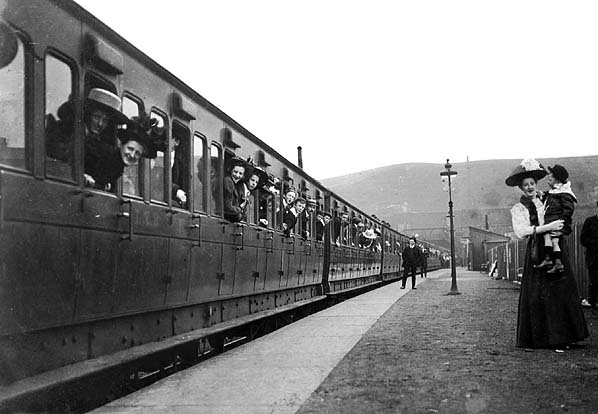 ![]() Looking south along the northbound platform at Haslingden c. 1910 during a visit by an excursion train that was run in connection with the Haslingden 'Annual Tradesmen's Outing'. The outings were organised by the Haslingden Trades Association until The Great War.