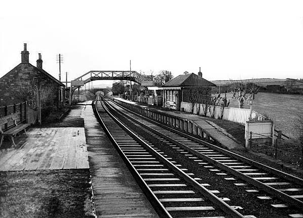 ![]() Looking south from the up platform at Hassendean station in the 1960s.