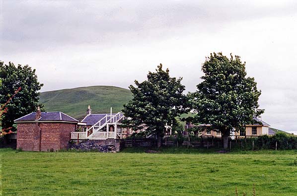![]() Hassendean station in in June 1998. This view shows the back of the down platform. The infill beneath the brick waiting room has now been excavated to created a basement.