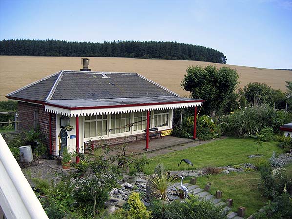 Hassendean station waiting room on the down platform seen from the footbridge in 2008.