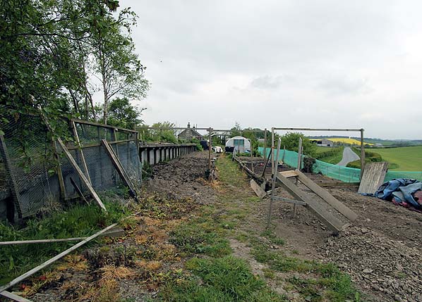 Hassendean station looking south from the end of the up platform in May 2011. This is the only part of the station where the track bed hasn't been filled up to platform level.