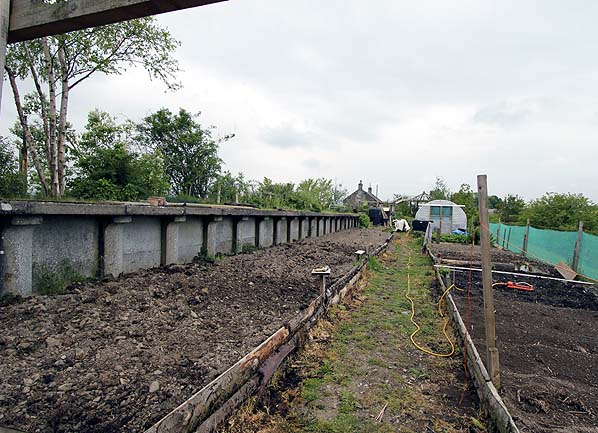 ![]() Hassendean station looking south from the end of the up platform in May 2011. This is the only part of the station where the track bed hasn't been filled up to platform level.