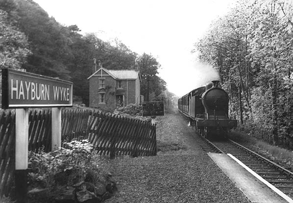Notes: Originally the platform was sited on the 'up' side of the track but in 1887 the NER complained to the Scarborough & Whitby Railway Company that the platforms were built of wood and were inadequate. The SWR were forced to build a new station on the 'down' side of the track on the same site. The stationmaster's house built in 1892, before this date the stationmaster lived in a nearby hotel. The station was closed in 1st March 1917 reopening on 2nd May 1921. Not all trains stopped at Hayburn Wyke. The station became unstaffed and was reduced to a Halt on 23.3.1953 coming under the jurisdiction of Staintondale Station. The station building was converted to holiday accommodation after the station became unstaffed and electricity was installed for the first time.