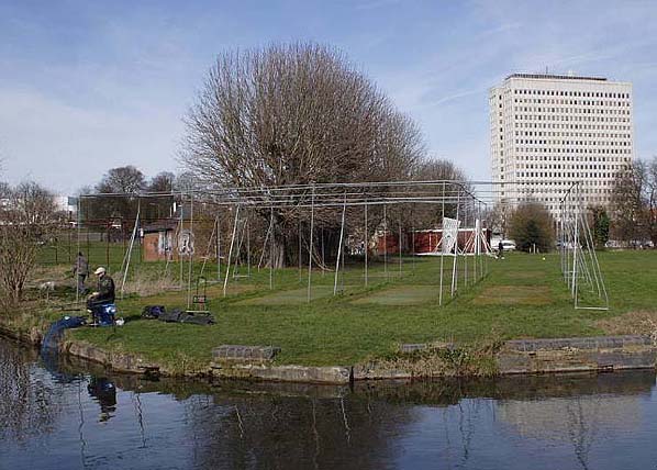 ![]() Station Name: HEATH PARK HALTThe site of the bridge over the Grand Union Canal in March 1990. Looking north towards the site of Heath Park Halt which was roughly where the tree is in front of the Kodak building.
