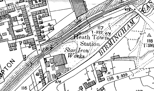 At the time of opening Heath Town would have been served by trains running between Wolverhampton High Level station and Walsall, both of which were in LNWR ownership.