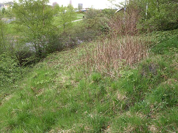 In May 2013 there was little to show that Heath Town station had ever existed other than the sloping paths that connected the platform to street level.