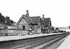 building was mostly single storey but included a two storey station master’s house at its southern end. An awning provided protection from the elements. Booking facilities, a parcels office, ladies’ and gentlemen’s waiting rooms and toilets were all accommodated in the building. An iron footbridge gave access to the northbound platform on which stood a brick-built single storey waiting room which also had an awning. Goods facilities were located to the south of the station.