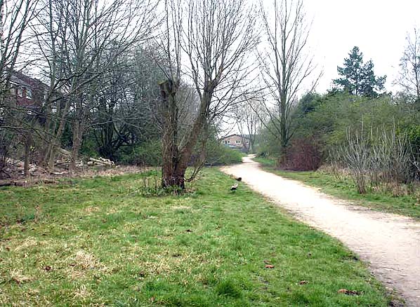 ![]() Looking east towards Station Road & Green Pastures in March 2009 from a point that would have been near to the east end of the station site.