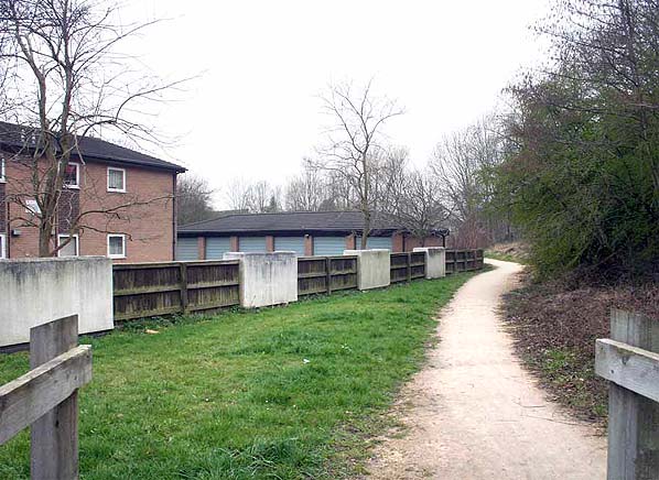 ![]() Looking west from the junction of Station Road and Green Pastures in March 2009. The station site would have been behind the building.