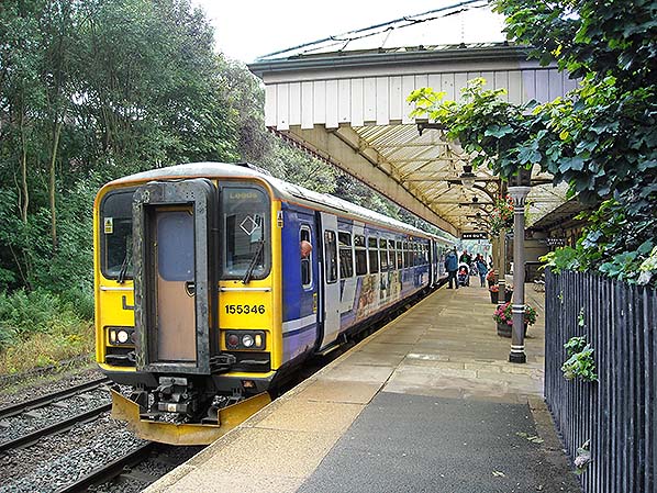 On 1 August 2009 Class 155 DMU No.155 346 forms the 17.00 departure from Hebden Bridge for Leeds. The nameboard in the foreground reflects Northern Rail and West Yorkshire Metro interests.