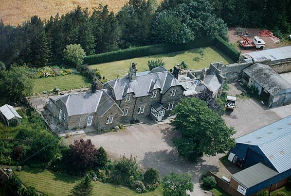 Aerial view of Hedgeley Station showing that the station building has been separated into two houses.