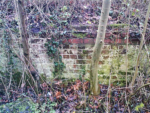 the dock in 2007. Photo from The Mile Cross Man blog ![]() Being away from the public footpath the cattle dock is intact but heavily overgrown. Thed whitewash on the brick facing can still be seen in this view from April 2007.