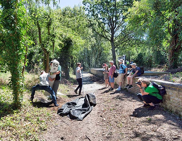 Photo by Stuart McPherson from The Mile Cross Man blog ![]() Following the refurbishment of Hellesdon station a public open day was held on on the 30th June 2018. As part of the plans for the open day, FONCS/NRHG were asked to reinstate the station’s M&GN pre-cast concrete mile post back into the ground in its original position opposite the platform. The mile post had been pushed over by the demolition crew in 1973 and lay in the undergrowth. After cleaning and repainting the mile post was put back in place during the open day.