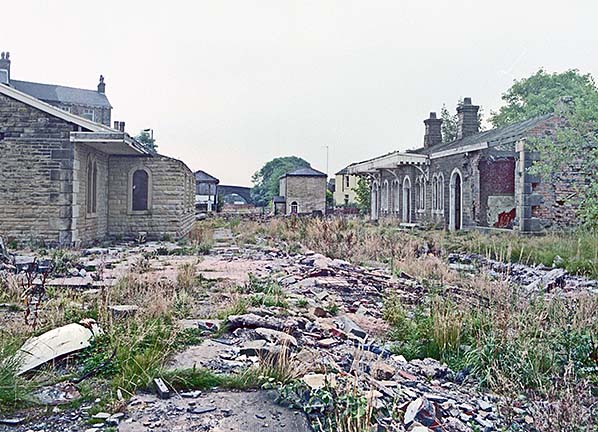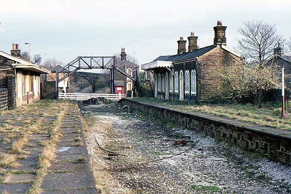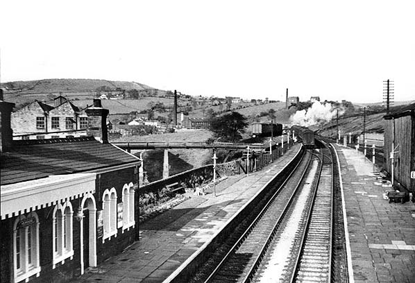 Helmshore station opened along with the entire 7.4 mile section of line between Stubbins Junction and Accrington on 17th August 1848, the line from Stubbins to Clifton Junction having opened nearly two years previously on 25th September 1846. The line required heavy engineering works and had severe gradients as it ascended from about 450ft to the summit of 771ft at Rising Bridge in only 2½ miles. From Accrington there was a lengthy climb at 1 in 40, easing to 1 in 47, and then 1 in 100 through Baxenden to Rising Bridge. From Haslingden the gradient was 1 in 76 downhill, slackening to 1 in 97 through Helmshore station, continuing down at 1 in 78 to Stubbins Junction. The goods yard was sited behind the southbound (up) platform and comprised four sidings, one of which passed through the goods shed that backed onto the platform. A 10-ton crane was installed. One of the sidings was private serving the adjacent Albion Mill with direct access into the mill from a small turntable. There were further sidings on the down side of the line, one serving J. Porritt & Sons.