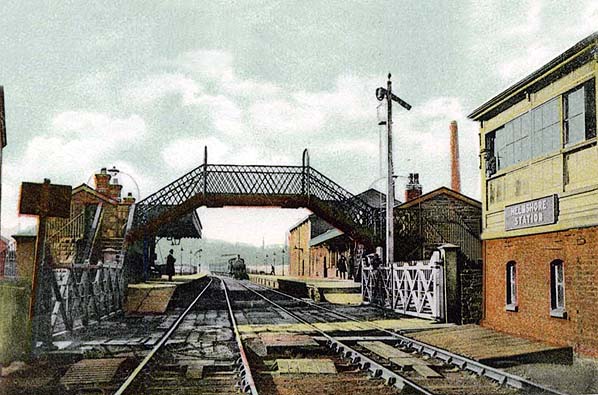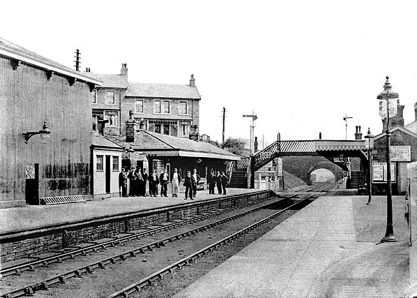 | In 1880 the LYR carried out a number of alterations and improvements at Helmshore. The original station building on the Manchester-bound platform containing the booking office became the principal facility. On the north-western end of the building there was a gentleman’s toilet. At the south-eastern end of the platform, adjacent to the level crossing, a footbridge |