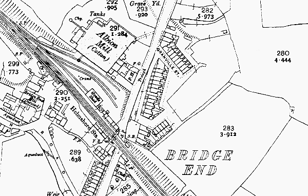Notes: Helmshore station was located on the East Lancashire Railway’s (ELR) Clifton Junction to Accrington line which had opened in stages between September 1846 and August 1848. The section of line through Helmshore was originally promoted by the Blackburn, Bury, Accrington & Colne Extension Railway (BBACER), which was incorporated on 30th June1845 to build a T-shaped line between Stubbins and Colne/Burnley via Accrington. Three weeks later, on 21st July 1845, BBACER was absorbed into the East Lancashire Railway (ELR).