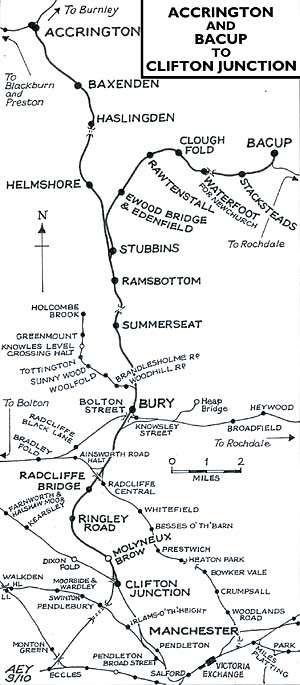 Clifton Junction, Molyneux Brow, Ringley Road, Radcliffe Bridge, Withens Lane, Bury Bolton Street, Summerseat, Ramsbottom, Haslingden, Baxenden & Accrington