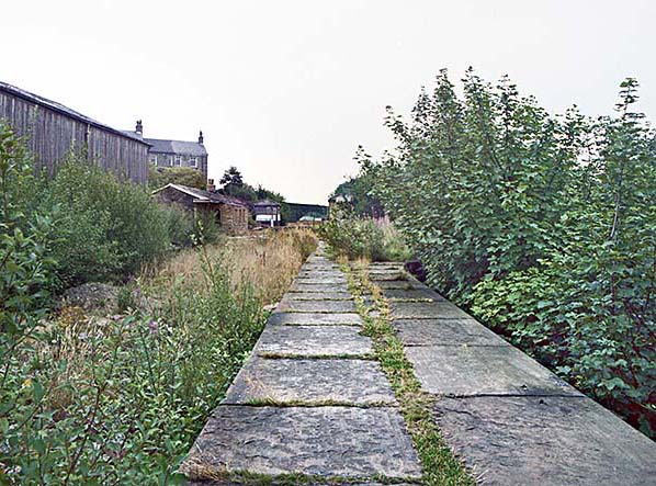 ![]() Looking southeast along the down platform at Helmshore station in August 1983 The large goods shed is seen on the left. A replica signal box now stands on the site of the original box seen ion the background alongside the level crossing.