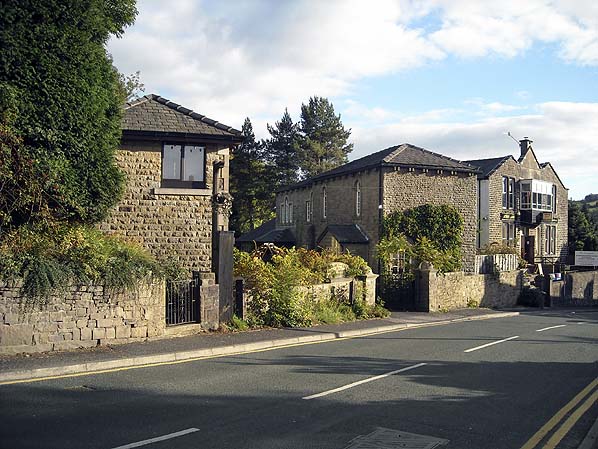 ![]() Looking at the site of the level crossing at Helmshore in September 2010. The building to the left of the picture stands on the site of the signalbox and has been built as a replica. Opposite it is the former station house now extended.