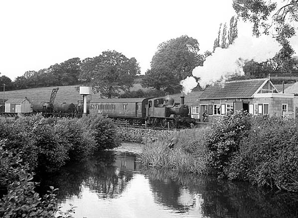 1470 propels the single passenger carriage out of Hemyock Station after arrival from Tiverton Junction on 4th September 1962.