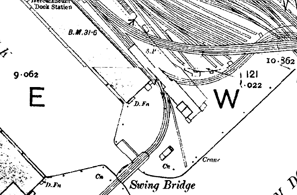 Notes: The Liverpool Overhead Railway (LOR) opened on 6 March 1893 and Herculaneum Dock was the northern terminus of the five mile line. The LOR was an elevated railway track level being 16ft above the street. The line was carried on an iron deck supported on iron pillars. By the late 19th century the Liverpool dock system had become so congested that a passenger railway was required and the LOR was built to meet that need. From the start it was an electric railway using three coach electric multiple units that collected their current from a live rail laid in the centre of the running rails.