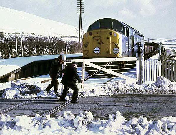 Feelings were running high along the route on the final weekend of passenger operations, with protestors evident at most stations. Anticipating the potential trouble, the authorities sent a Clayton 'pilot' engine ahead of 1M82 from Hawick to 'prove' the route south after a set of points at Hawick had been found to be tampered with.