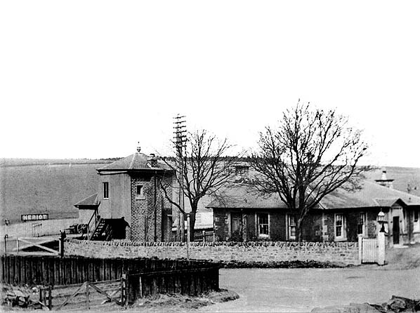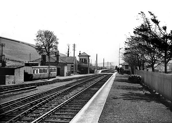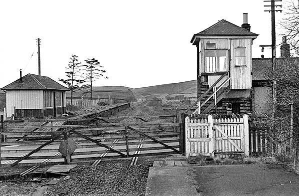 There was a signal box on the up side between the station house and the level crossing. This controlled the crossing and access to the small goods yard which was on the up side, north of the station. The yard comprised two sidings, one of which served a cattle dock.
