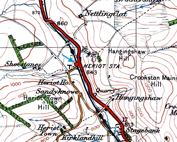 Notes: Heriot station opened on 4 August 1848 as part of the NBR's line to Hawick. It served the village of Heriot and the nearby Heriot House. Currently the village comprises 150 dwellings widely spread out. The local school has 56 pupils.