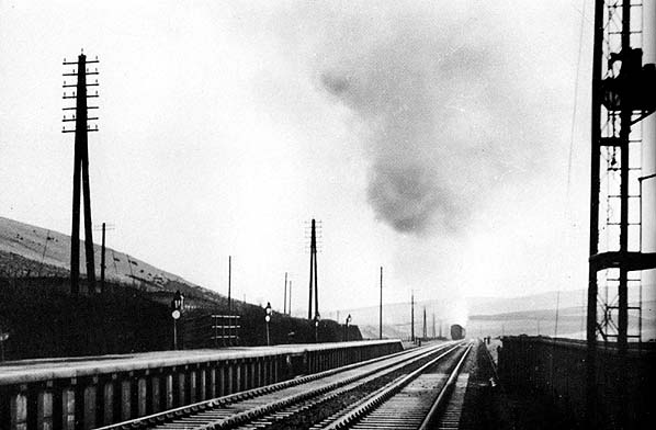 A southbound train leaving Heriot station in the 1960s.