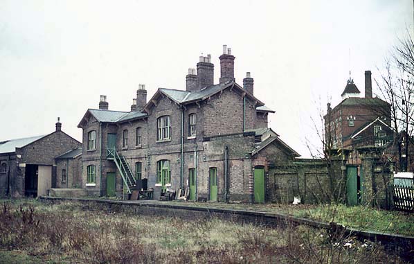 Hertford North station in March 1976, Mc Mullen's brewery is seen to the rear.