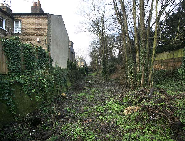 The overgrown track bed west of Port Hill bridge in January 2011.