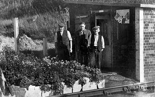 Plate layers at High Lane pose for a photogrpah with their garden in the 1930s.