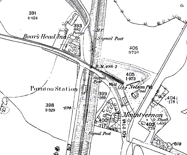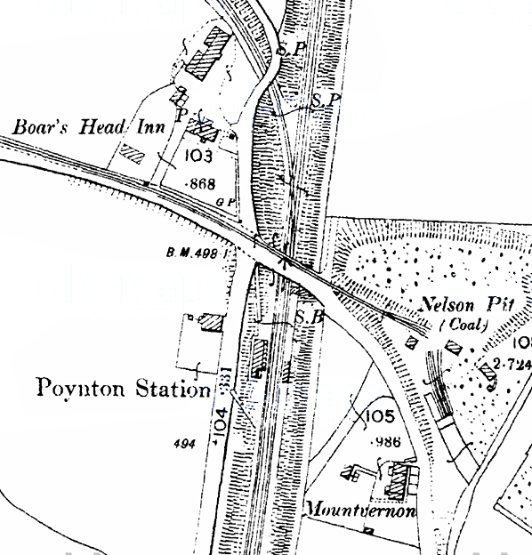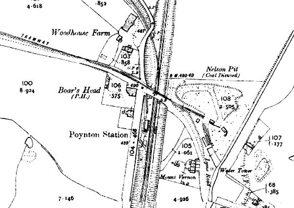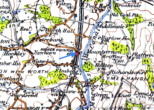 On the north side of the Lyme Road bridge a branch line curved westwards; it connected to the Ansons Pit and the colliery lines of Lord Vernon.