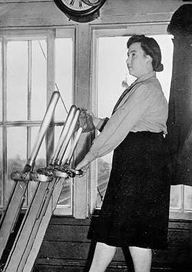 By 1938 Higher Poynton had 11 up and 13 down trains. However, with the outbreak of the Second World War on 3 September 1939, there was a drastic reduction in services. After the war the service did not return to its 1939 levels and the LNER summer timetable for 1947 showed 11 services to Macclesfield Central and 11 to Manchester London Road on Monday-to- Friday. On Saturday there were 13 trains to Macclesfield, 12 to Manchester London Road and one to Romiley. On Sunday there were six trains in each direction. During WW2 Higher Poynton had a lady signalman, Gladys Parker, pictured right.