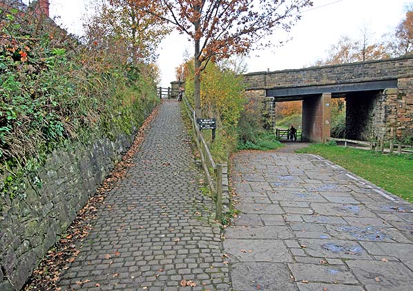 The Higher Poynton down platform access path seen on 6 November 2010.
