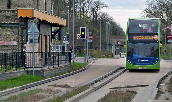 One of the proposals was for a guided bus way along most of the Cambridge - St. Ives route. There was also a further proposal to reinstate the railway but this was rejected by the council who claimed that the guided bus way was the only option on the table. The bus way would involve replacing the track with a concrete guideway and demolition of the stations to provide car parking. Buses will travel on the guideway along the disused railway line from St. Ives to Cambridge. They will then continue through Cambridge on normal roads and rejoin the guideway at Cambridge Railway Station to travel through to Addenbrooke's Hospital and Trumpington Park & Ride.