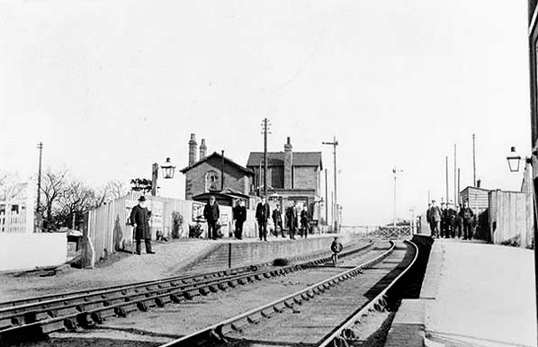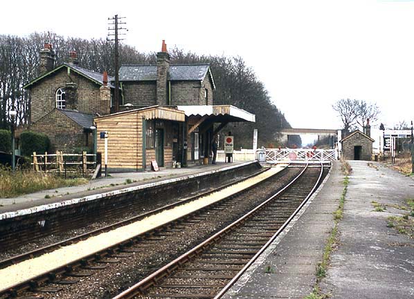 Notes: The main station building was on the up platform, this comprised the stationmaster's house and booking office. A separate timber waiting shelter was sited alongside the house with a second shelter on the down platform. There was a small goods yard on the up side to the north of the station with one siding running through a timber goods shed and running back behind the up platform to serve a cattle dock and pens. Three private sidings ran into the Orchard food preserving factory to the north of the station.