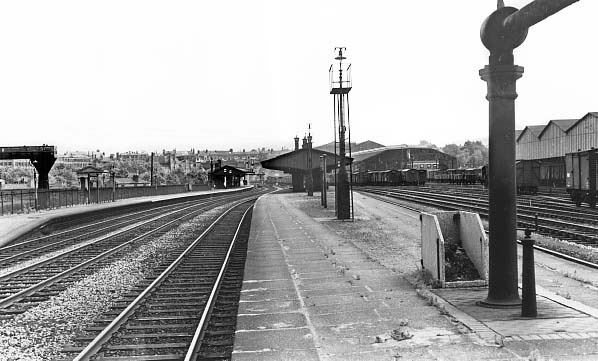 Photo by Peter Shoesmith from Geoff Dowlings Flickr photostream Reproduced with kind permission from Geoff Dowling and John Whitehouse ![]() Looking in the Birmingham direction in the early 1960's from midway along the island platform although the main lines are quiet the goods yard look to be a hive of activity. Photo from the John Mann collection ![]()
