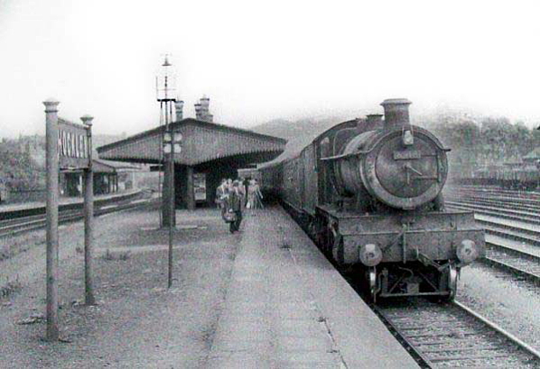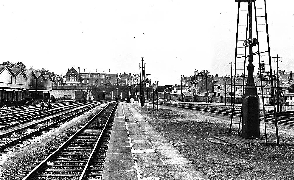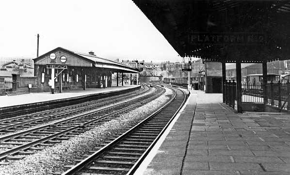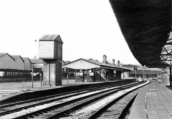 A mid 1960's picture looking south along the island platform as passengers prepare to board a northbound working. The station has certainly gone into decline in comparison with earlier shots with a selection of weeds starting to grow on the platform. The good yard, to the right, seems to have less wagons stabled within the yard.