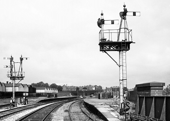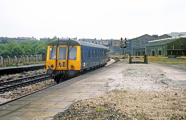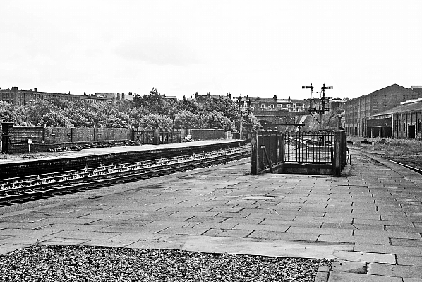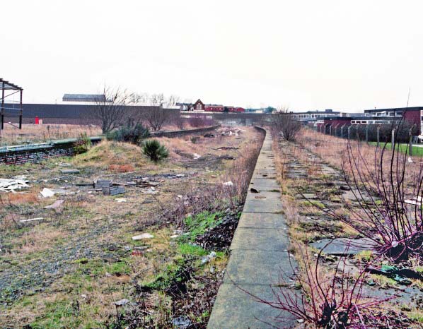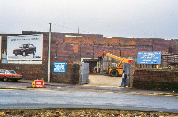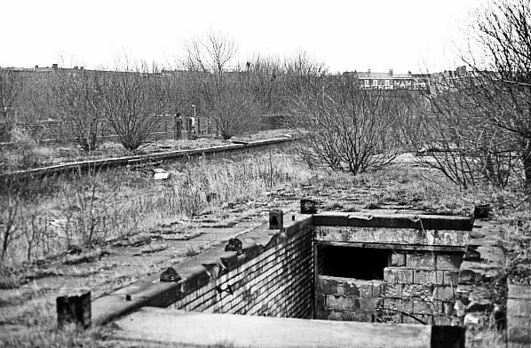 ![]() By October 1971 weeds were becoming prevelant in the four foot of the up and down main lines. The usual motive power for the route was a single car DMU it is seen here departing for Birmingham. Photo by Bernard Mills ![]() Looking along the up relief line platform in the winter of 1984 with industrial units springing up on the site of the former goods yard. The foresight of the WMPTA had protected development along the entire length of the trackbed as this prime City Centre land would have more than likely been built upon ending any hope of a railway running through the site again. Photo by Nick Catford ![]() Looking along the length of the up main, Birmingham direction, platform in the Wolverhampton direction in the winter of 1984. The former goods area, to the right, which contained the cattle pens has since been built on by Birmingham City Council. Photo by Nick Catford ![]() Looking towards Birmingham from, what would have been, the centre of the down main line which due to the space constraints at the station site was never provided with a platform. By the winter of 1984 the trackbed has attracted some fly tipping but both platforms look to be relatively intact. Photo by Nick Catford ![]() Looking back along the down relief platform towards Birmingham in the winter of 1984 with the Hockley tunnel portal visible. Photo by Nick Catford ![]() By the time this shot was taken in 1987 nature had really taken over the station site. The subway railings have been removed, by persons unknown, and it looks as if the subway has been explored. Photo by Pete Hackney from his loose_grip_99 Flickr photostream ![]()