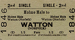 Tickets for travel from intermediate stations, except at Watton, were issued by the guard. This had happened since Great Eastern Railway days, providing evidence of low numbers of passengers using the line’s smaller stations.