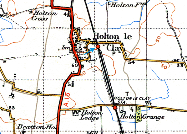 Notes: Although Holton-le-Clay had a station opened with the ELR in 1848 it was sited some distance from the village so with the introduction of a railmotor service in 1905 a new halt was opened much closer to the village. It consisted of two short low platforms with a timber waiting room and lamp on the up platform and a lamp and a signal box on the down platform to control the crossing. While Holton-le-Clay station in its isolated position closed on 4th July 1955, the halt survived until the closure of all the remaining intermediate stations between Louth and Grimsby on the 11th September 1961.