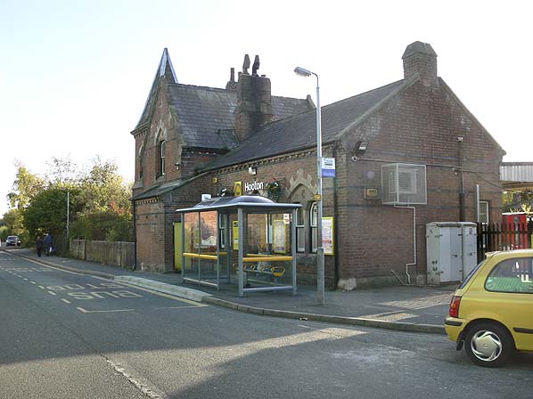 The booking office and former station masters house at Hooton looking southwest in October 2009 from the approach road.