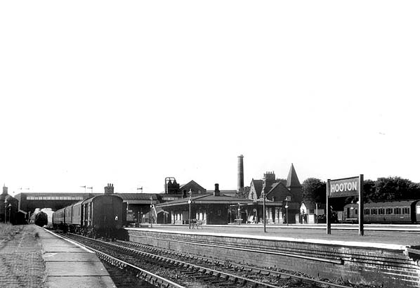 Looking north at the former West Kirkby branch platforms at Hooton Station in 1961. The West Kirby Branch platforms were numbered 6 and 7.