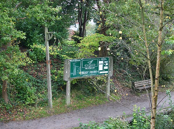 Lamp standard and station nameboard at Horam Station in September 2005. Note the bracket for ther 'totem' sign on the lamp standard. Photo by Nick Catford