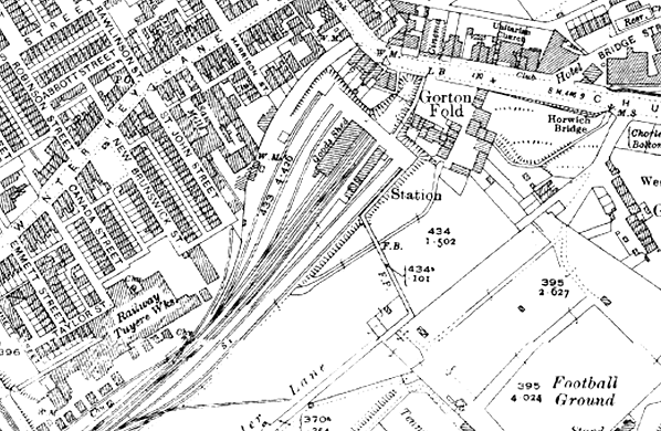 Notes: Horwich station was the northern terminus of a 1.4 mile branch that was opened by the Lancashire & Yorkshire Railway (LYR) on 14 February 1870. The branch connected to the LYR Bolton and Preston line. Before the branch was opened the nearest station to Horwich had been at Blackrod.