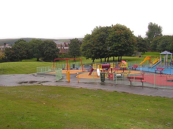 ![]() Looking north at the site of Horwich station in September 2008. The station site is now occupied by a public park called 'Old Station Park' which opened in 1980.